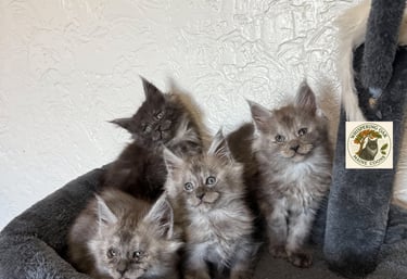Our Maine Coons are home-raised with love, care, and plenty of attention. Each kitten grows up surrounded by family, making them well-socialized, affectionate, and ready to bring joy to their forever homes.