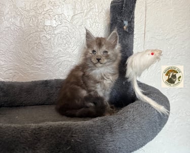 Female kitten out of Vlad and Nadia. Born on September 16th 2025 and will be ready to head to her fuuurever home on 11/25/2025.